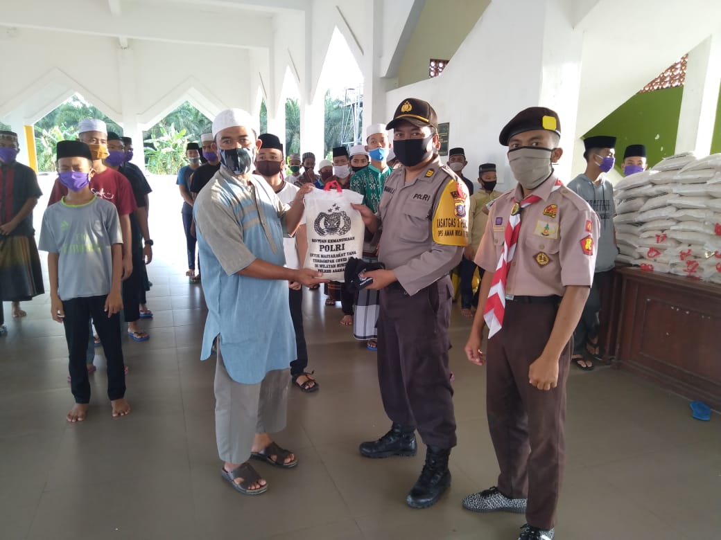 Dalam menyambut HUT Bhayangkara ke - 74, Kapolres Asahan AKBP Nugroho Dwi Karyanto di wakili Kasat Binmas AKP M. Noor menyambangi para Santri Tahfiz Masjid Agung Ahmad Bakrie dan memberikan bantuan kepada para santri, Kamis (19/6/2020).