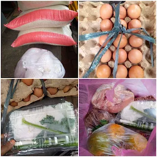 "Paket sembako 600 ribu itu kami hanya dapet beras ukuran 10 Kg sebanyak 3 karung, telur 2 kg, kentang 1 kg, daging 1 kg, jeruk 1 kilo, pir 1 kg, kacang ½ kg sama sayuran satu paket," katanya.