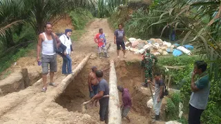 Gotong royong itu dilakukan menyusul adanya informasi dari masyarakat petani kebun. " Bahwa jalan penghubung antar desa ambles/longsor sehingga jalan terputus tidak bisa dilalui kendaraaan roda dua maupun roda empat.