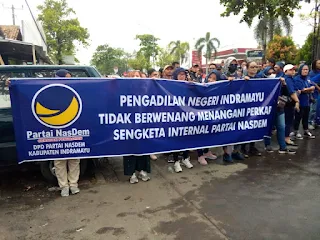 Diluar pengadilan, terdapat pengamanan khusus karena dua kubu yang bersiteru menghadirkan pendukungnya masing-masing, baik penggugat Ruyanto maupun tergugat DPD partai NasDem. Masa pendukung yang masing-masing adalah relawan dan kader partai ditahan berhadap-hadapan dengan ratusan personil kepolisian dari Polres Indramayu. Se-usai sidang sekitar pukul 15.40Wib, Ruyanto saat ditanya mengenai persidangan ia menjelaskan sidang yang dilaksanakan tadi adalah sidang pemeriksaan berkas-berkas. “Hanya pemeriksaan berkas-berkas saja”. Jawab Ruyanto.