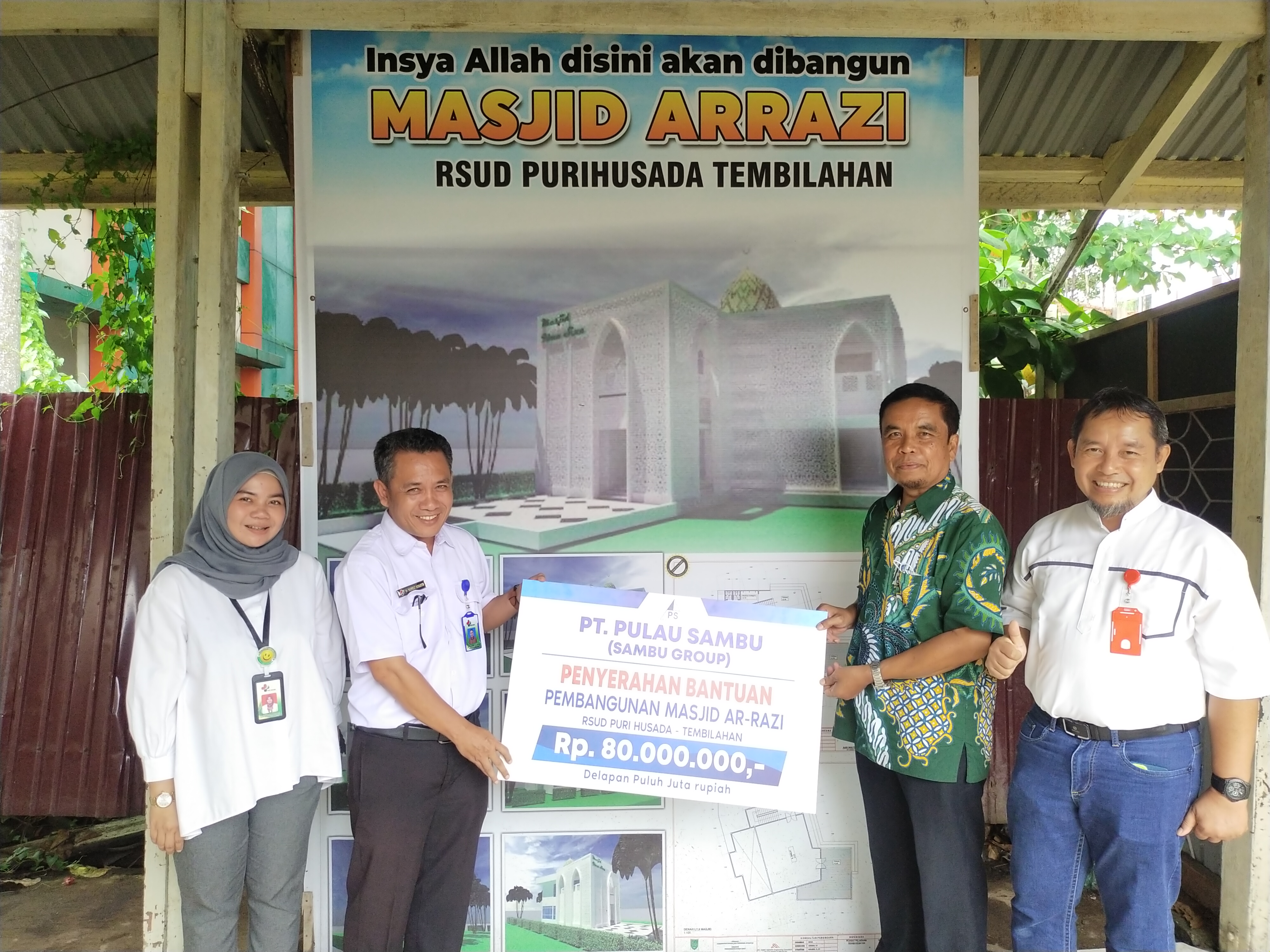 Pimpinan sambu group yang diwakili Humas Ir. Ahlim Ginting menyerahkan bantuan uang tunai bagi pembangunan Masjid AR-Razi yang terletak di Rumah Sakit Puri Husada Tembilahan Rabu (27/12)
